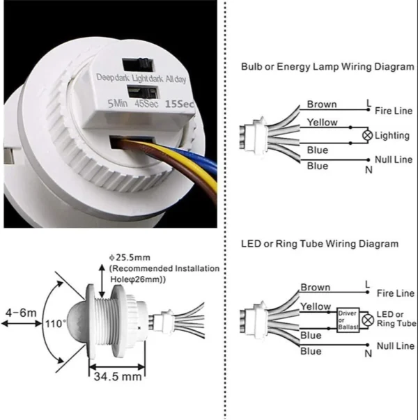 This PIR Infrared Motion Sensor Switch detects human movement to automatically control lights or devices. It features an adjustable time delay, provides stable, flicker-free lighting, and offers auto on/off operation for energy-saving convenience. Perfect for hallways, staircases, and indoor spaces.