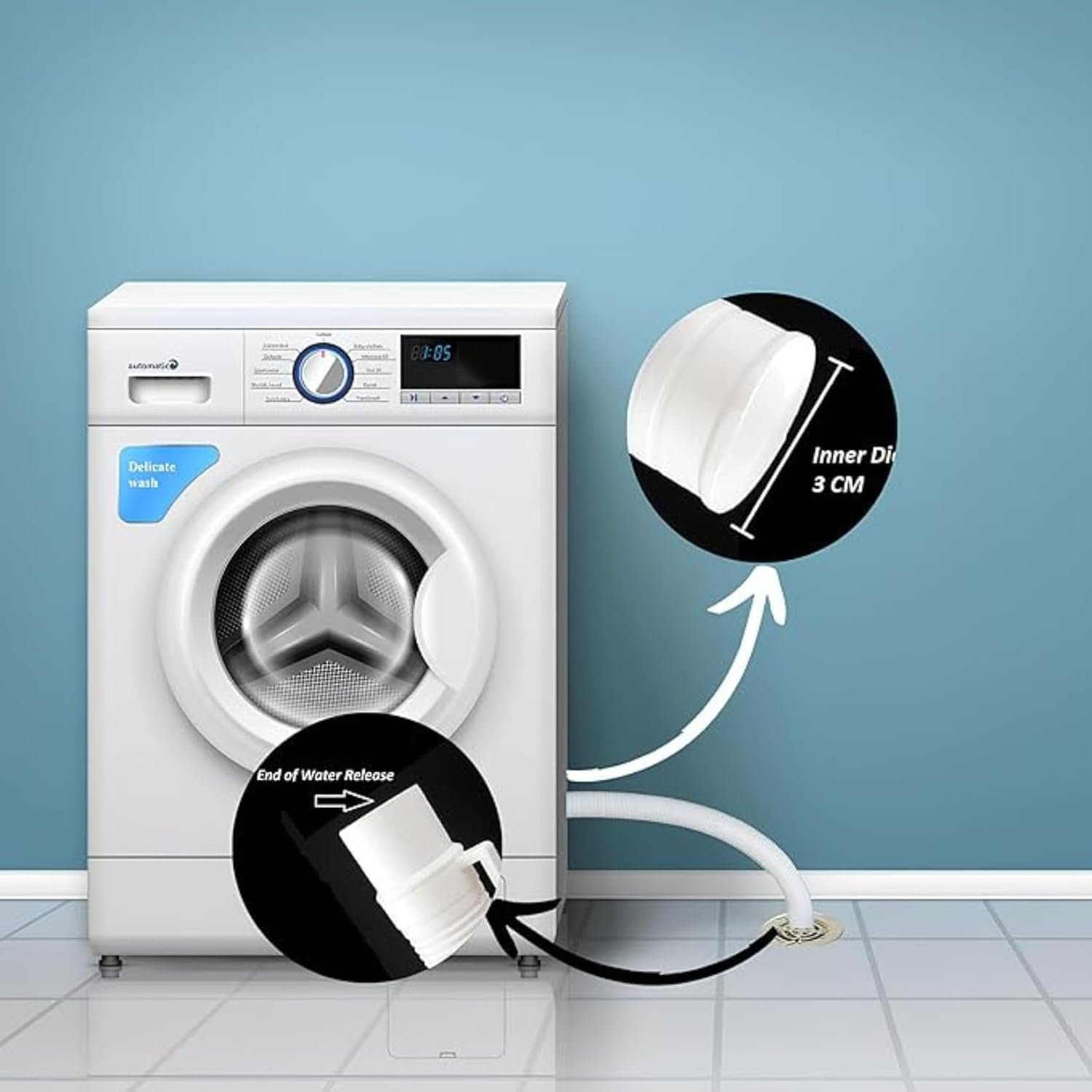 - Easy Installation – Hassle-free setup; simply connect one end to the washing machine outlet and the other to your drain.